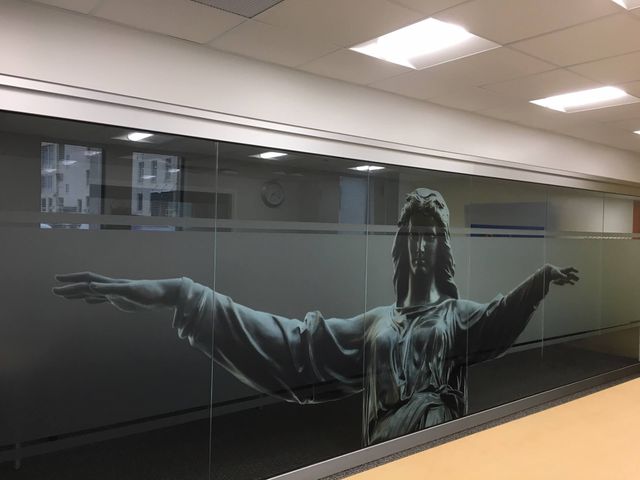 Consider branded patterns using your logo elements for glass surfaces that require partial privacy. This approach balances practical needs with brand reinforcement.