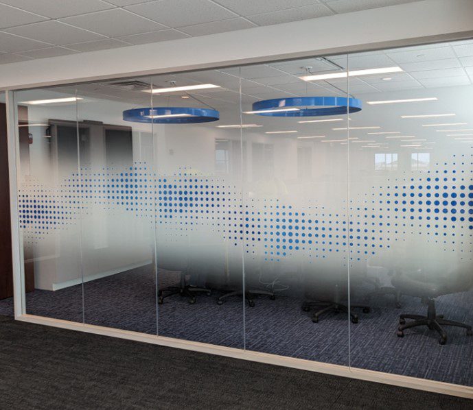 Conference rooms can feature gradient films that offer privacy at seated eye level while maintaining transparency above. This commercial window film design preserves the open feeling while creating functional meeting areas.