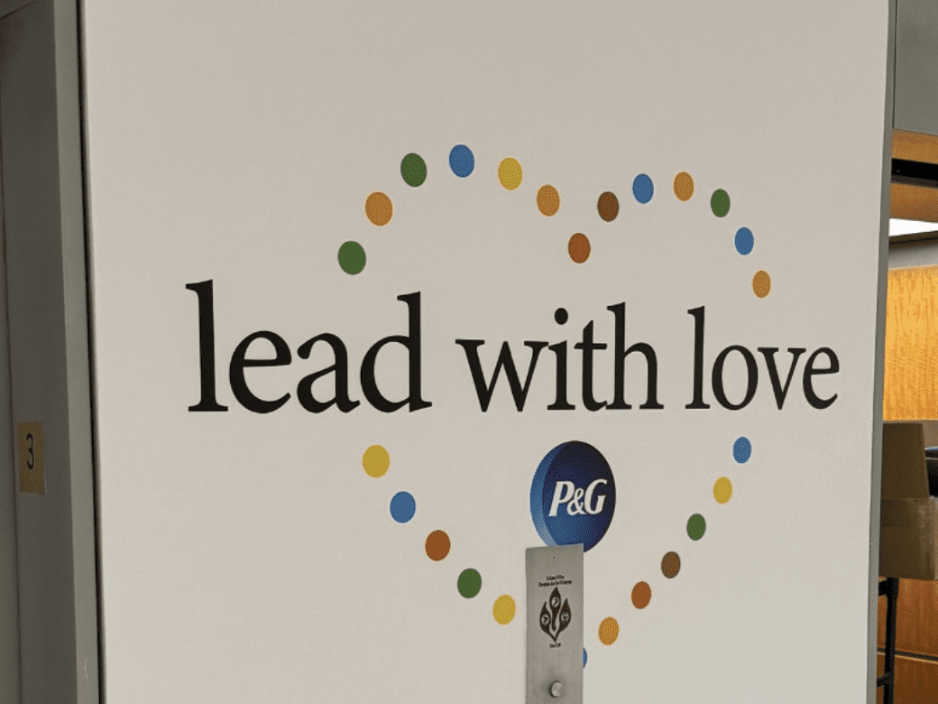 Proctor & Gamble chose a custom wall graphic featuring values-driven messaging for their corporate office space in Cincinnati, OH.